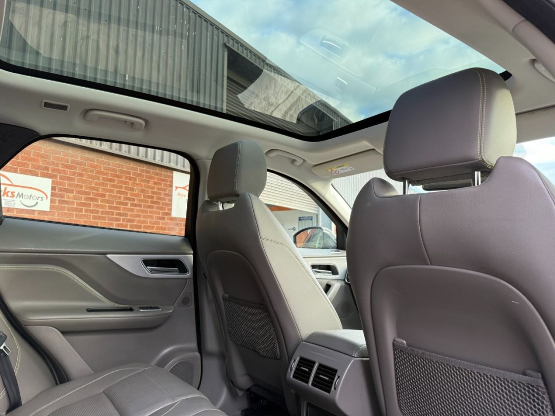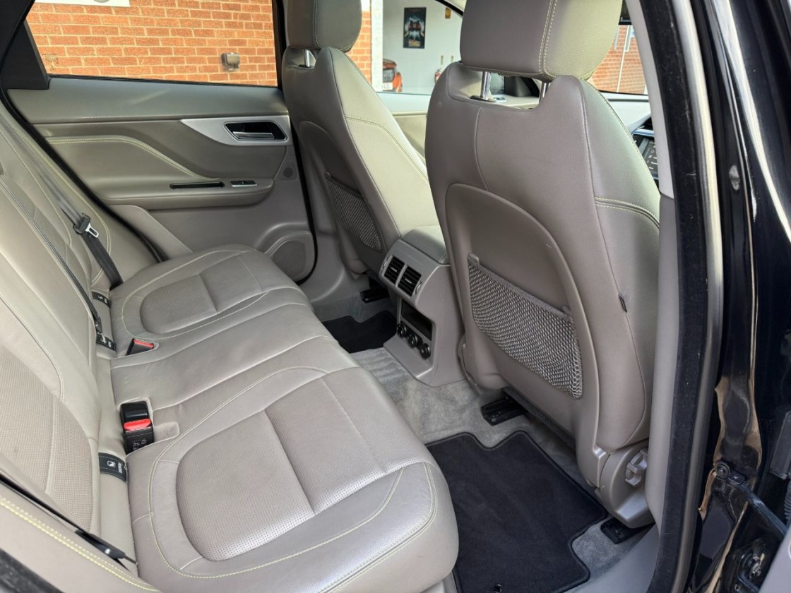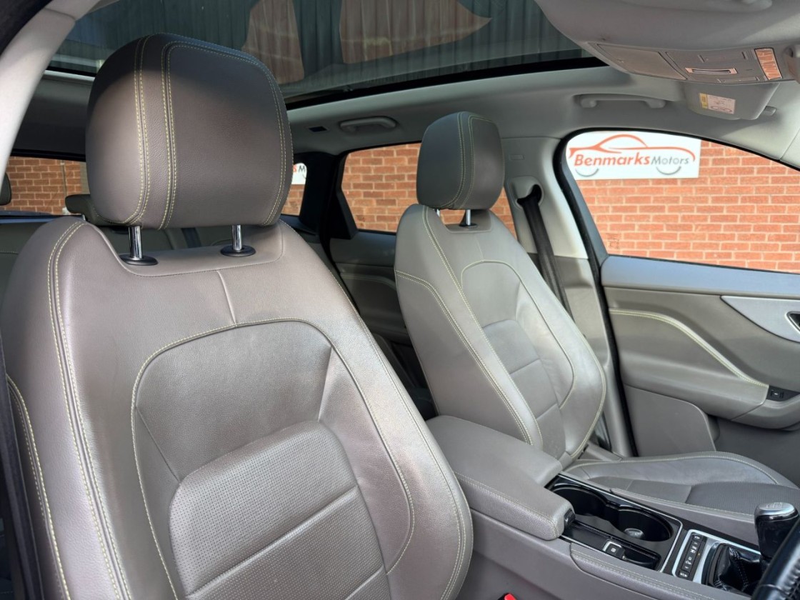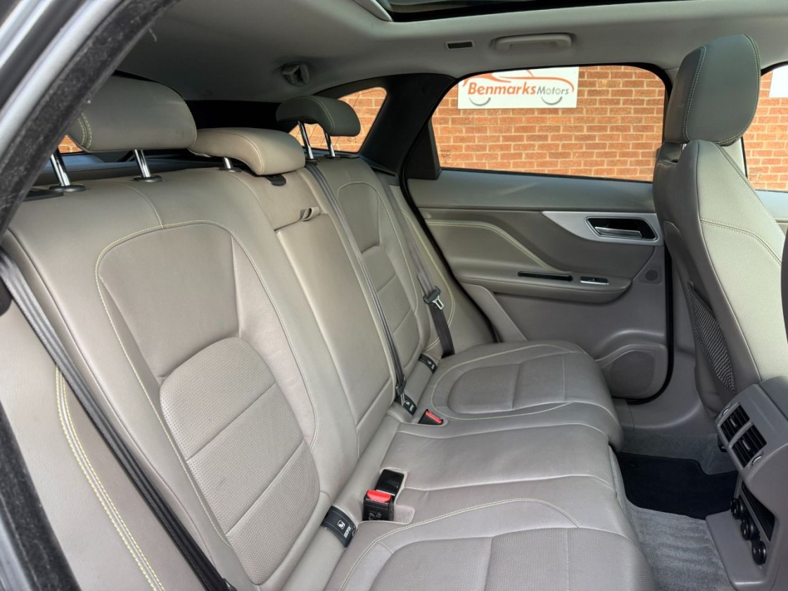 As an R-Sport model, it features distinctive styling upgrades including sportier bumpers, side skirts, alloy wheels, and a refined interior with leather sport seats and contrast stitching. It offers a comfortable and engaging drive with the practicality of a family SUV and the elegance you'd expect from Jaguar.