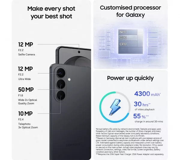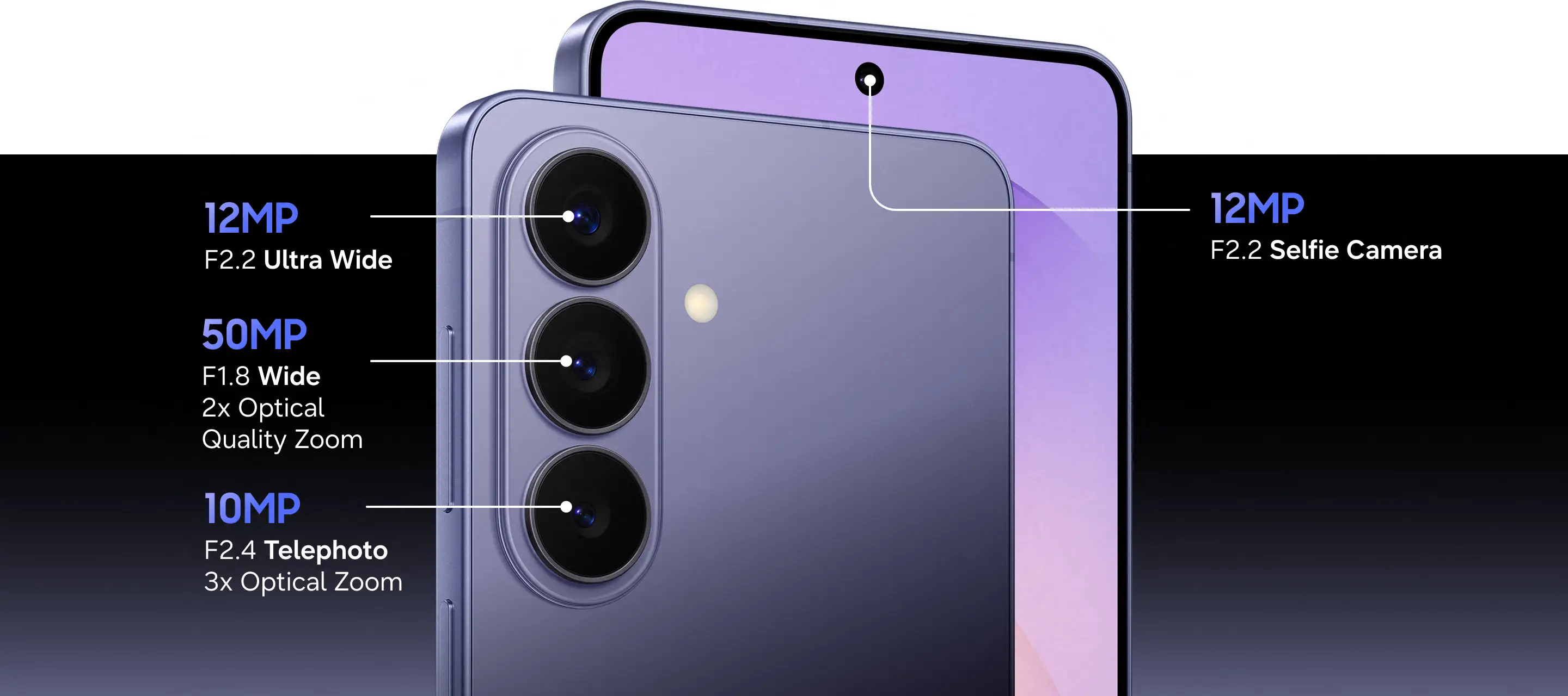 Galaxy S26's front cameras now feature AI (ISP) for more natural selfies with highlights and shadows - true to your natural skin tone and other details such as hair and eyebrows, just as your eyes see them.